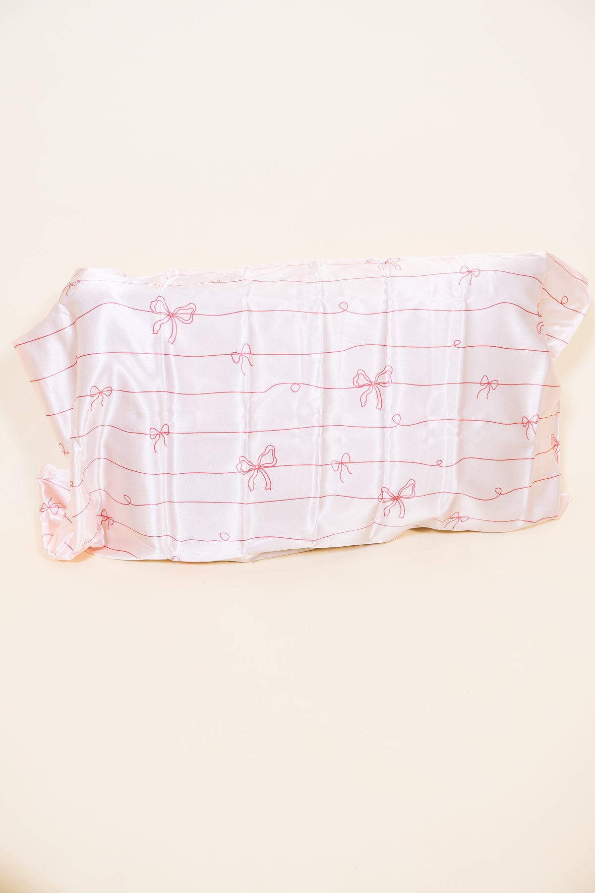 Elevate your beauty rest with this luxe satin pillowcase, designed to feel like a little holiday indulgence—every single night. The striped bow print adds a touch of festive, timeless charm while the smooth satin works its magic as you sleep.