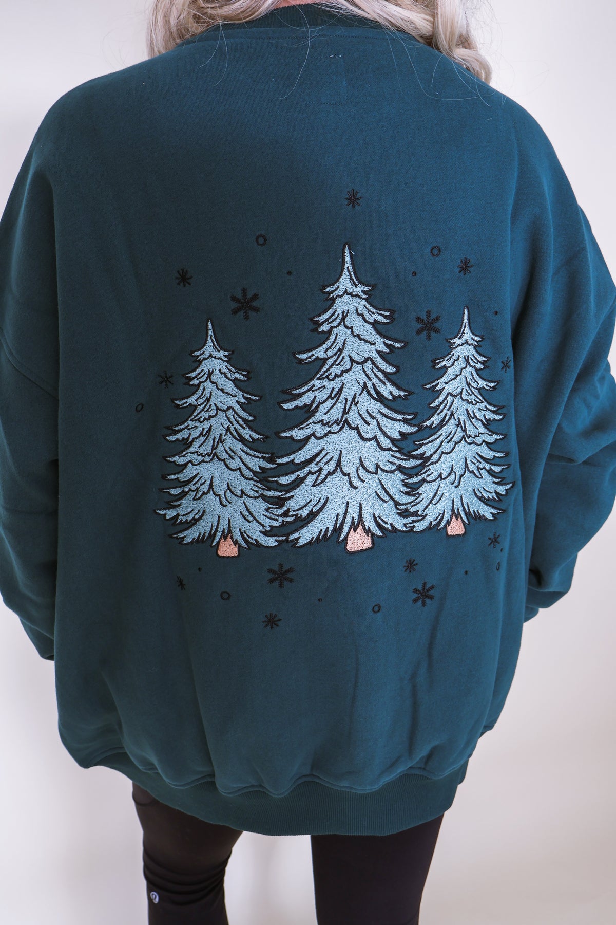 Celebrate the season in style with our Green Christmas Tree Embroidered Sweatshirt. This soft, comfy pullover features detailed embroidery on both the front and back, making it extra special and full of holiday cheer. Crafted from a cozy cotton blend with a relaxed fit, it’s perfect for everything from decorating the tree to sipping cocoa by the fire.