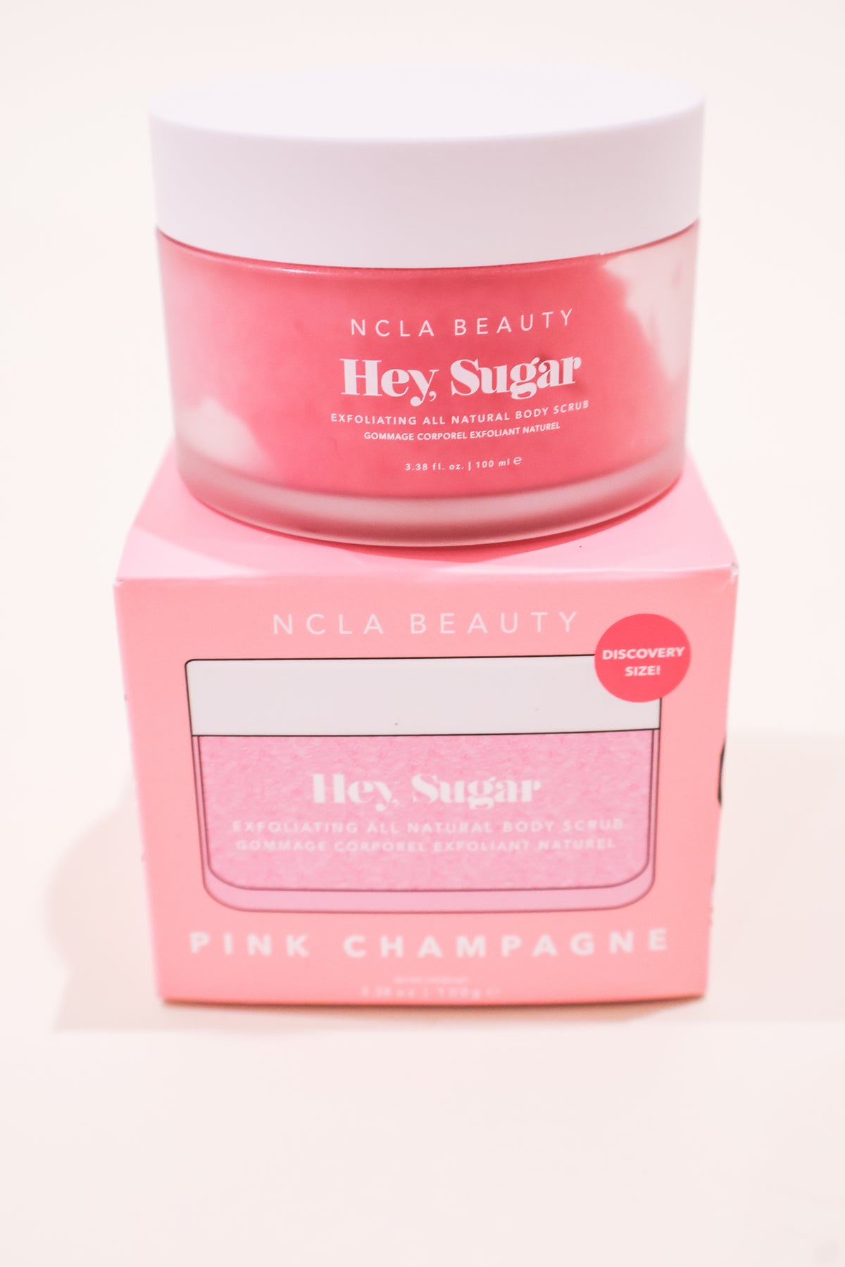Cheers to your smoothest skin ever. Uncover glowing skin with Hey Sugar Body Scrub's all natural ingredients that exfoliate and hydrate. This pink champagne scented body scrub is like happy hour for your skin!