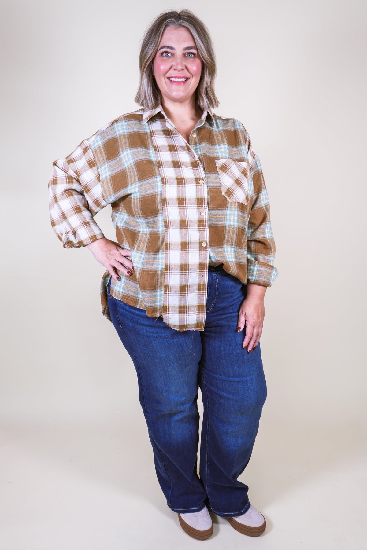 Meet the Noelle Patchwork Flannel—our updated take on a forever favorite. This oversized shirt features a unique spliced construction that creates a patchwork effect, giving it a one-of-a-kind look. The asymmetrical hemline adds an edgy twist, while the relaxed fit keeps it effortlessly cool and comfortable.