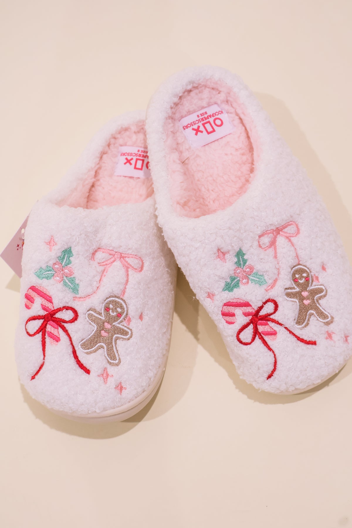 Step into the sweetest season with our Gingerbread Bows Christmas Sweets Slippers! Designed to match our best-selling pajama set, these cozy slippers feature the cutest gingerbread and bow print — giving major cozy Christmas morning energy.