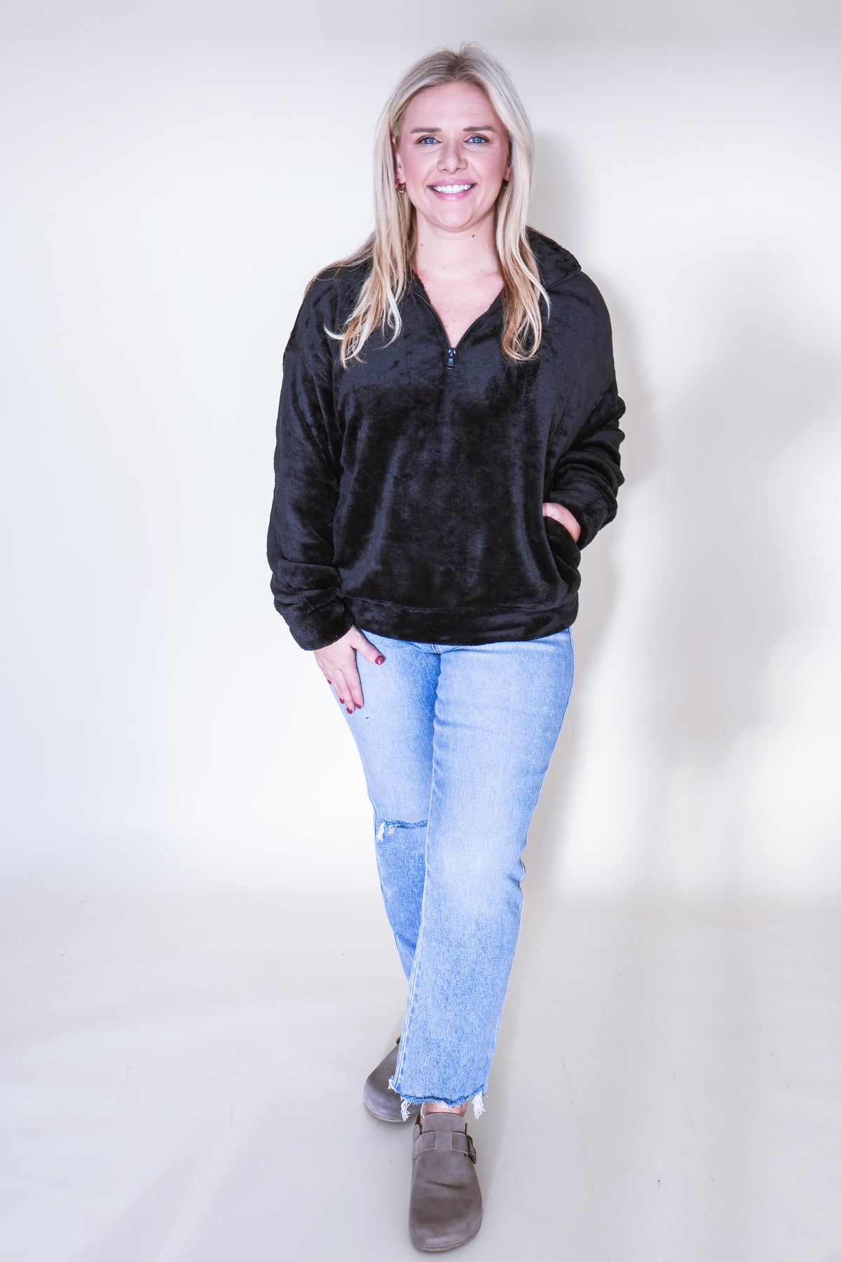 Cozy never looked so chic! This ultra-soft faux fur pullover is everything you need for those chilly days. Designed with a relaxed fit, functional front pocket, and half-zip neckline — it’s the perfect blend of comfort and style. The high-quality faux fur fabric feels luxurious while keeping you warm all season long.