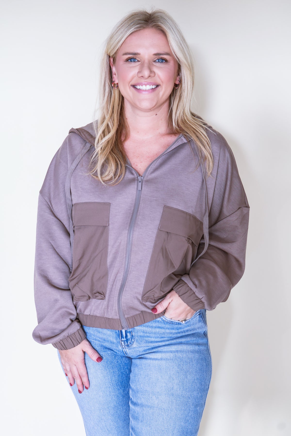 Soft Scuba Full Zip Hoodie Jacket - Cocoa
