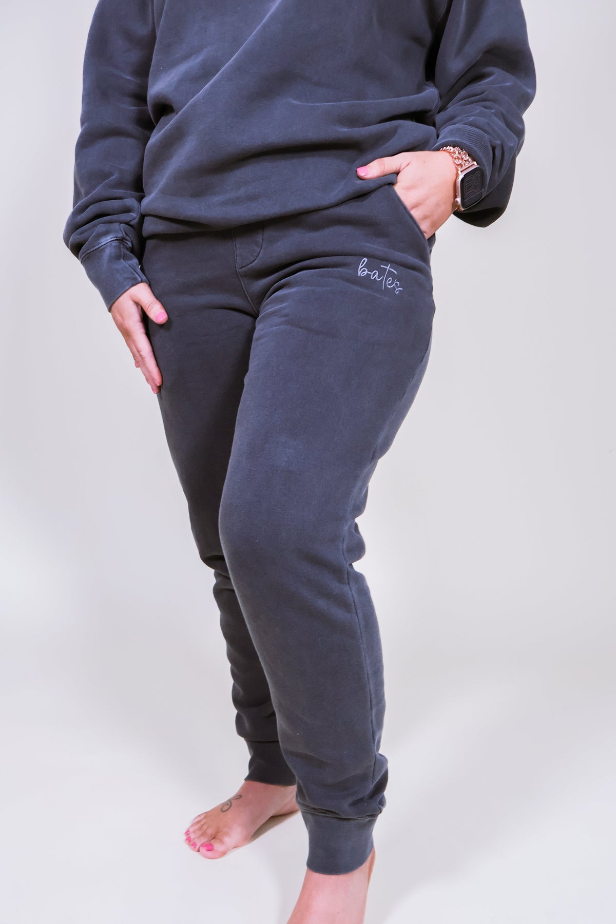 Designed for effortless styling, these joggers pair perfectly with the matching BATES Embroidered Sweatshirt for a cohesive, custom look. Each pair is made to order, making them an everyday essential for lounging, travel, or casual wear.