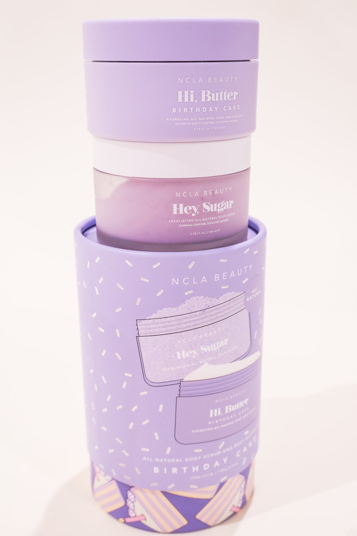 For your smoothest birthday suit ever! Scrub down and butter up with this discovery set complete with a body scrub and body butter in a brand NEW, long awaited birthday cake scent.